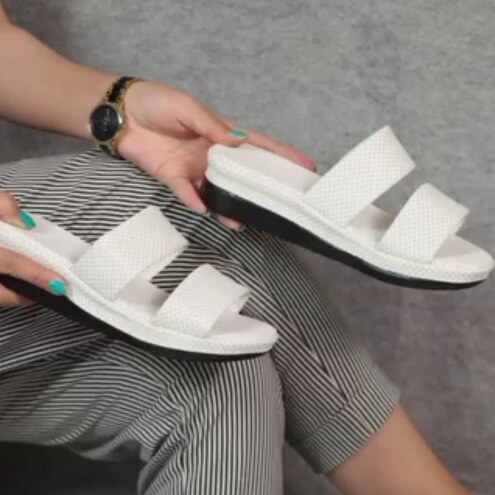 صندل زنانه روفرشی طبی لژ ۴ سانت | با کفی استاندارد غیرنرم – سفید و مشکی