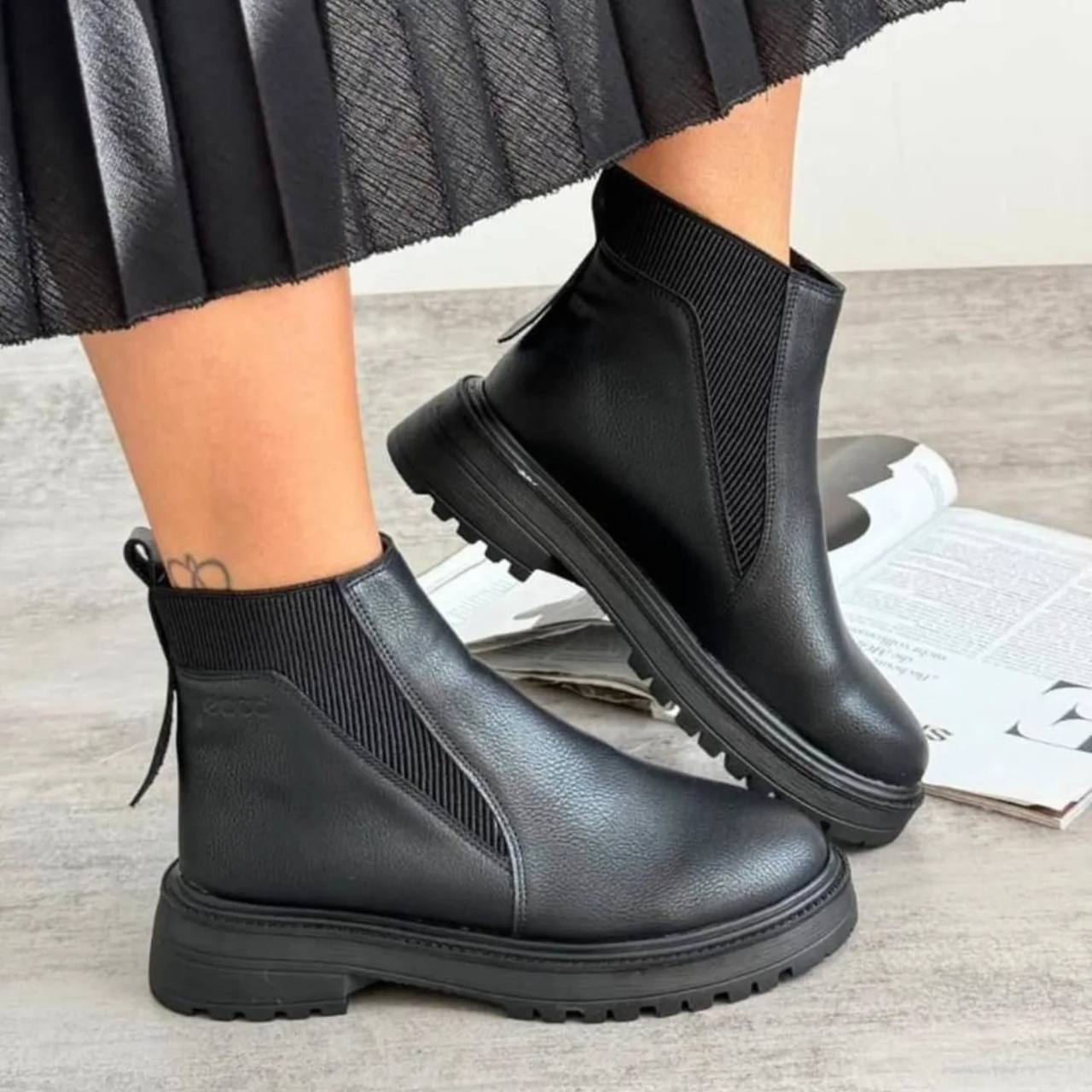 - استایل کلاسیک: این نیم بوت زنانه اکو Ecco به خوبی با شلوارهای پارچهای راسته، دامنهای میدی با جوراب شلواری مشکی و پالتوهای بلند مجلسی ست میشود و ظاهری شیک و خانومانه میبخشد.