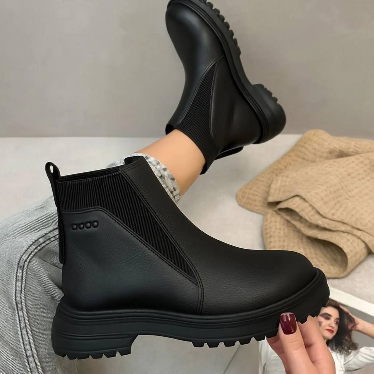 - راحتی بی نظیر بغل کش: برای راحتی حداکثری در هنگام پوشیدن، در دو طرف کار از کش تعبیه شده است. این طراحی بغل کش باعث میشود که نیم بوت زنانه به راحتی جذب شده و کاملاً فیت پا قرار بگیرد، بدون اینکه کوچکترین فشاری به پا وارد کند.