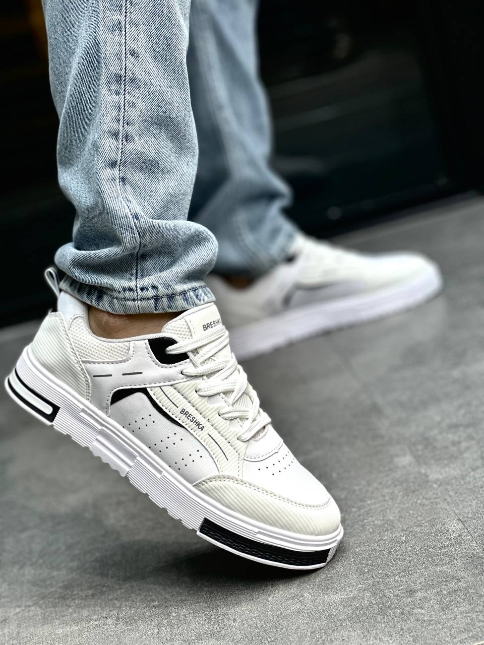 - ✔️ طراحی شیک و خاص: رنگ سفید کلاسیک با طراحی مینیمال و مدرن برشکا، این کفش را از سایر ونسهای موجود متمایز میکند.