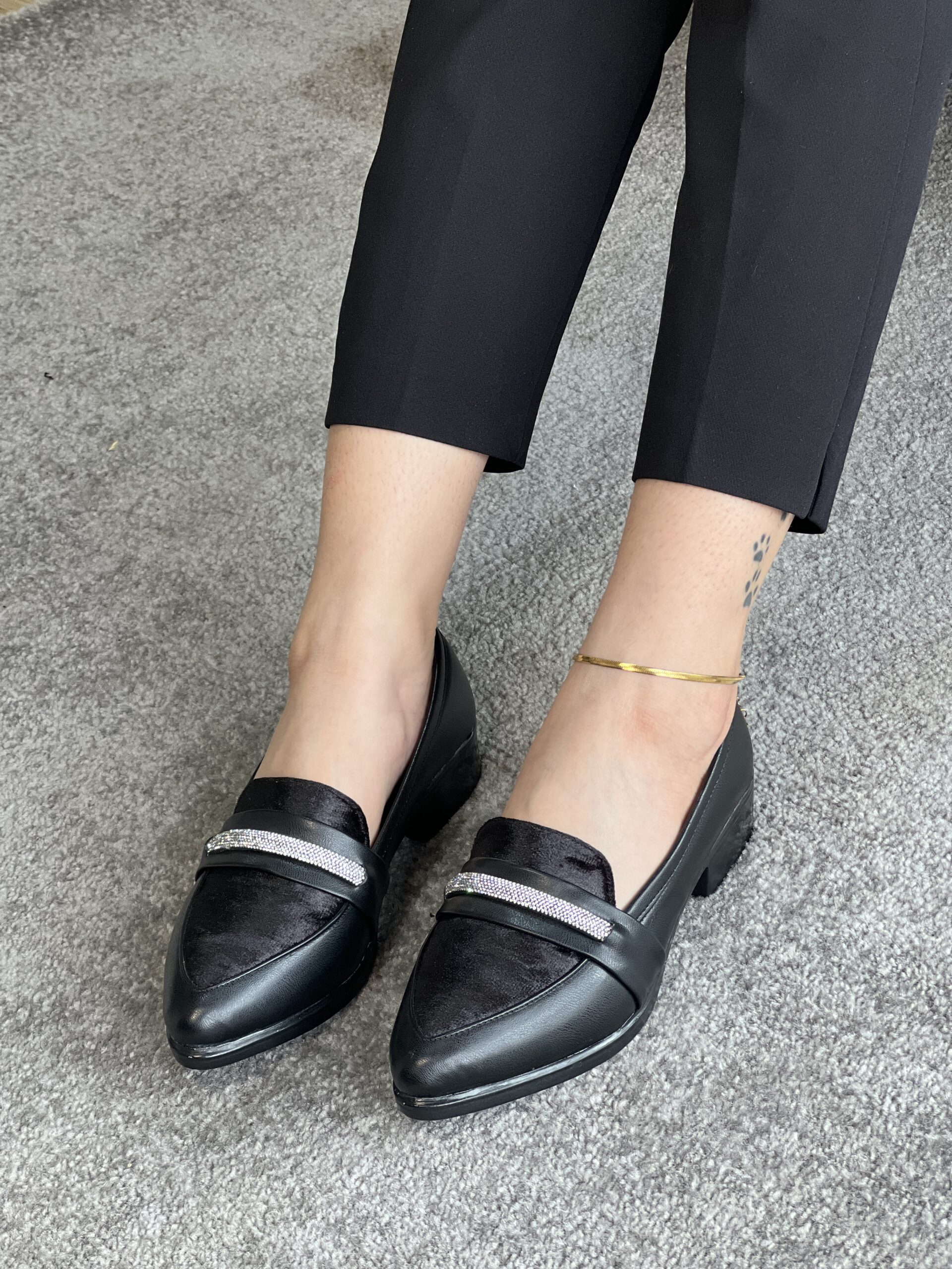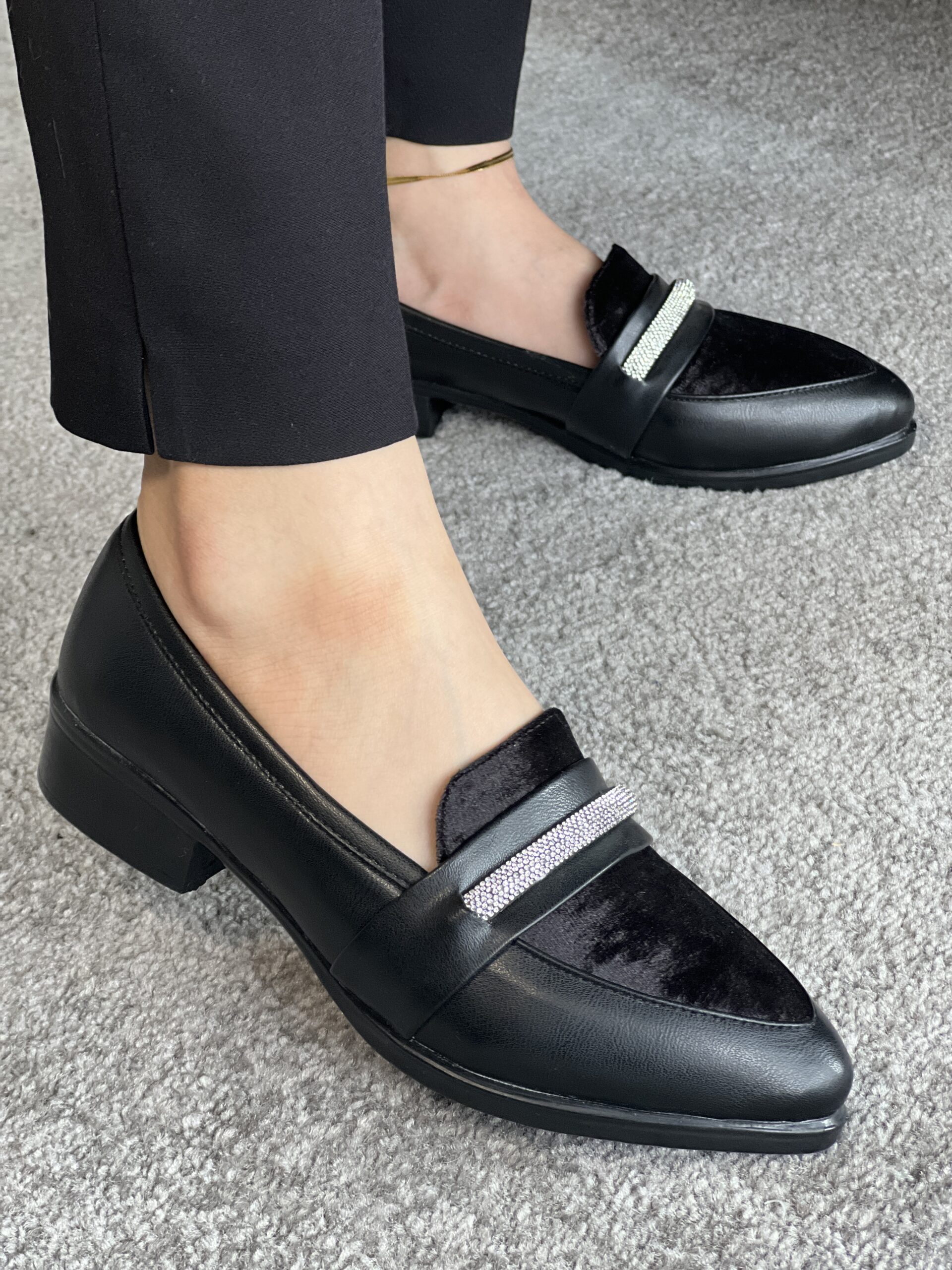 کفش کالج زنانه نگیندار مدل جدید (رویه مخمل و سوگو) – فقط سایز ۳۷